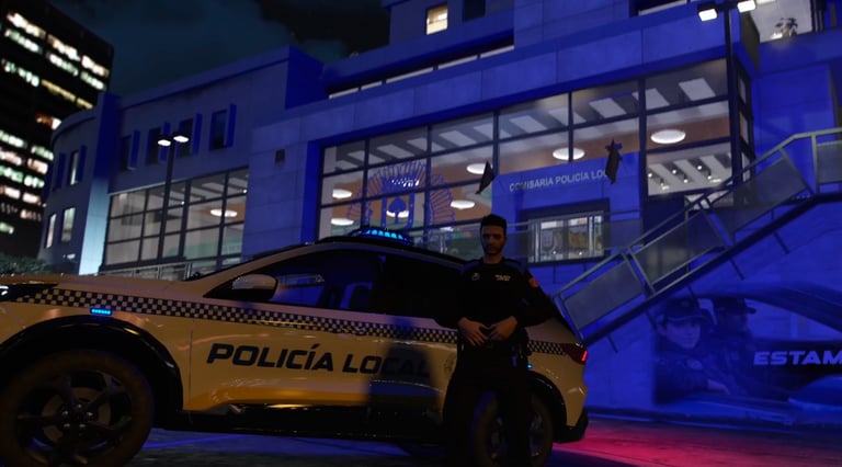 Seguridad ciudadana, investigación criminal y operativos especializados. Integramos pruebas psicotécnicas, formación continua y progresión profesional dentro de una experiencia de rol realista.